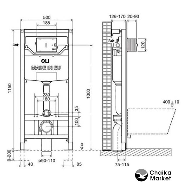 | Отверстия под унитаз | 180 мм, 230 мм |