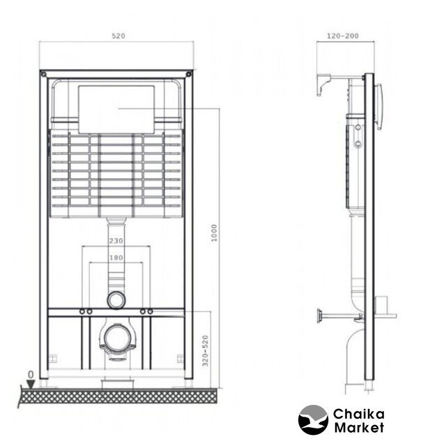 крепление на капитальную стену, макс. нагрузка 400 кг, двухрежимный слив, механическое управление, бачок в комплекте, 48x118x14-17 см