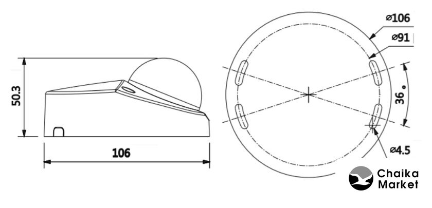 купольная, матрица 1/3" CMOS, 4 Мп, объектив F/2 3.6 мм, освещенность от 0.08 лк, ИК-подсветка, интерфейс проводной