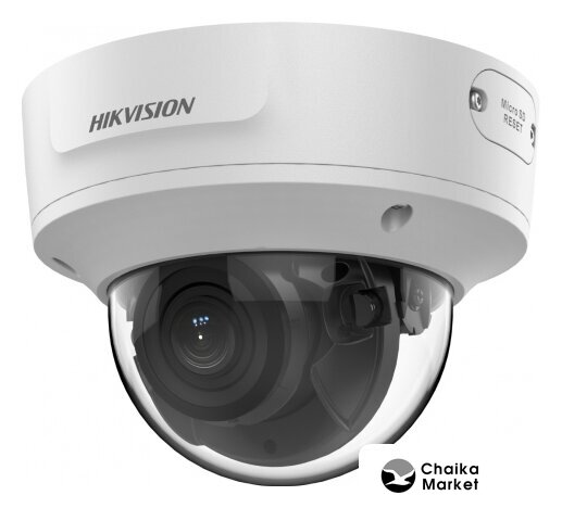 уличная проводная камера, купольная, матрица 1/2.8" CMOS, 2 МП, объектив F/1.6 2.7-13.5 мм, ИК-подсветка, интерфейс проводной, подключение микрофона, карты памяти SD