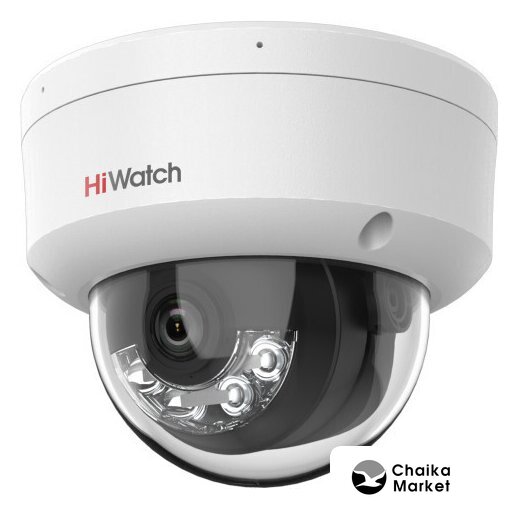 уличная проводная камера, купольная, матрица 1/1.8" CMOS, 4 МП, объектив F/1 2.8 мм, теплый свет подсветка, интерфейс проводной, карты памяти microSD