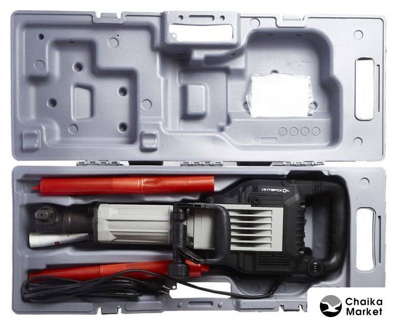 Комплектация | МолотокБоковая рукояткаЛомЗубилоТюбик со смазкойРуководство эксплуатацииГарантийный талонКейс |