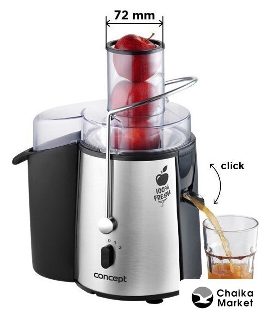 800 Вт, центробежная, отверстие для загрузки: 76 мм, ёмкость для сока