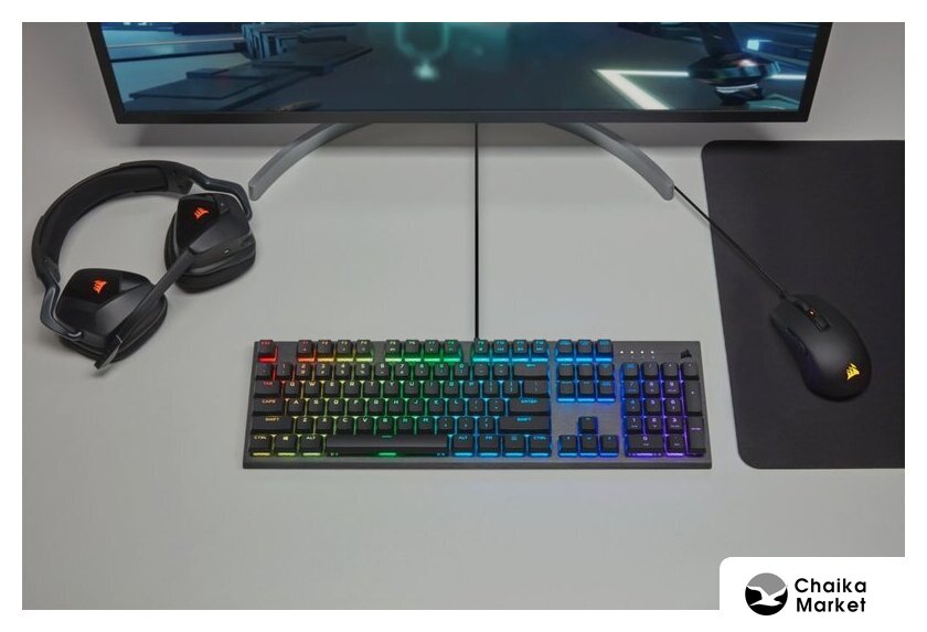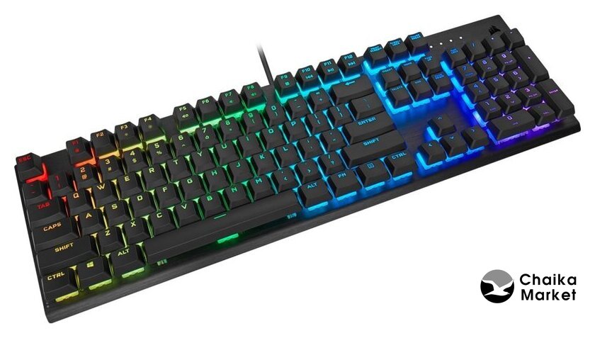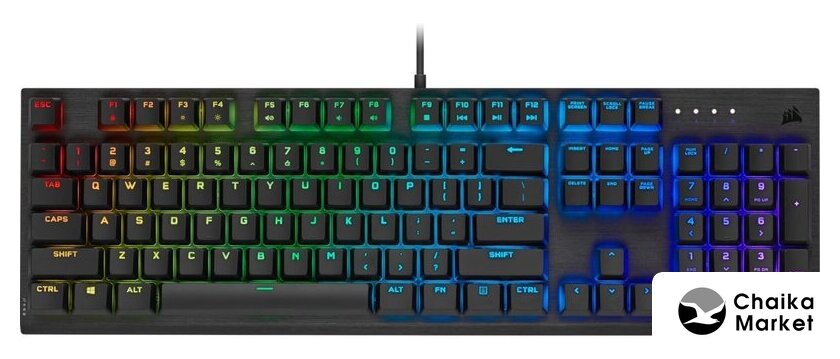 игровая для ПК, механическая, Cherry MX Red, ход линейный/тихие, пластик, интерфейс подключения - USB-A, цвет черный