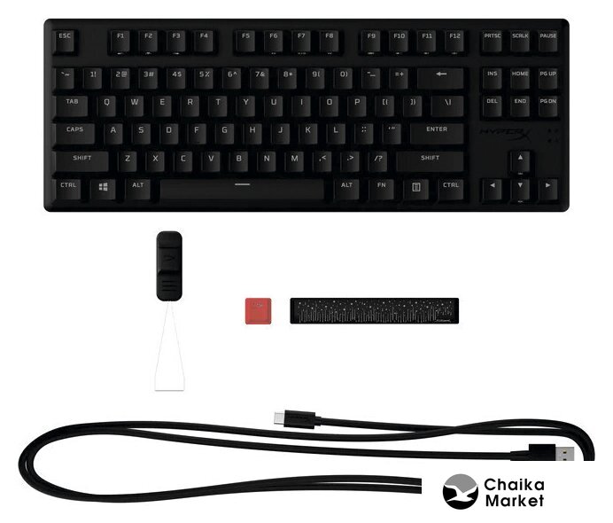 игровая для ПК, механическая, HyperX Red, ход линейный, полностью металлическая, интерфейс подключения - USB-A, подсветка, цвет черный
