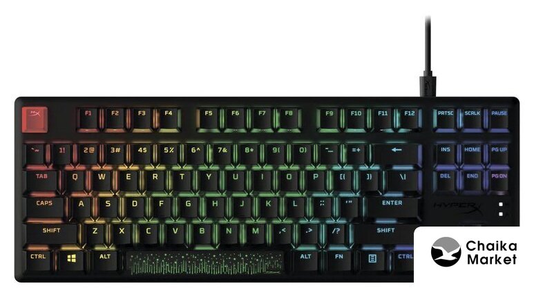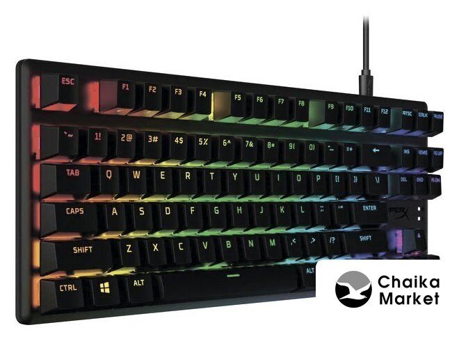 игровая для ПК, механическая, HyperX Red, ход линейный, полностью металлическая, интерфейс подключения - USB-A, подсветка, цвет черный