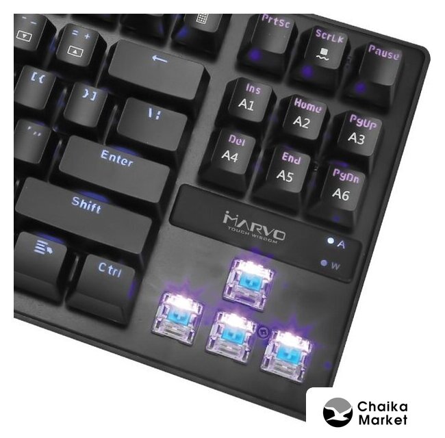 игровая для ПК, механическая, Outemu Blue, ход с кликом, пластик, интерфейс подключения - USB-A, кириллица: да, влагозащита, цвет черный
