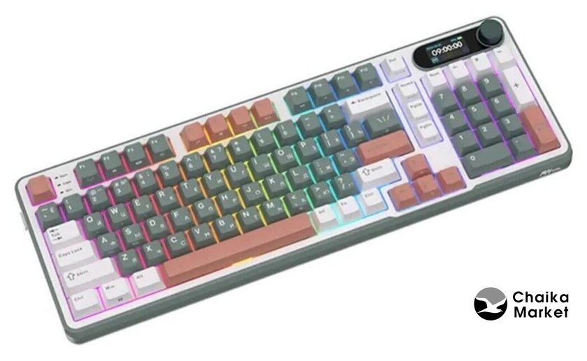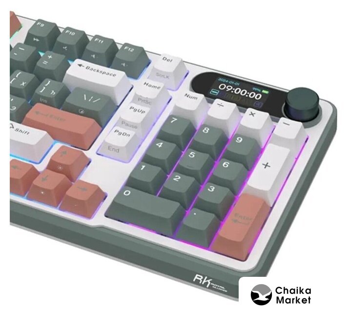 игровая для ПК, механическая, RK Brown, ход тактильный/с кликом, пластик, интерфейс подключения - USB-A/радио/Bluetooth/USB-C, USB-хаб, цвет серый/белый
