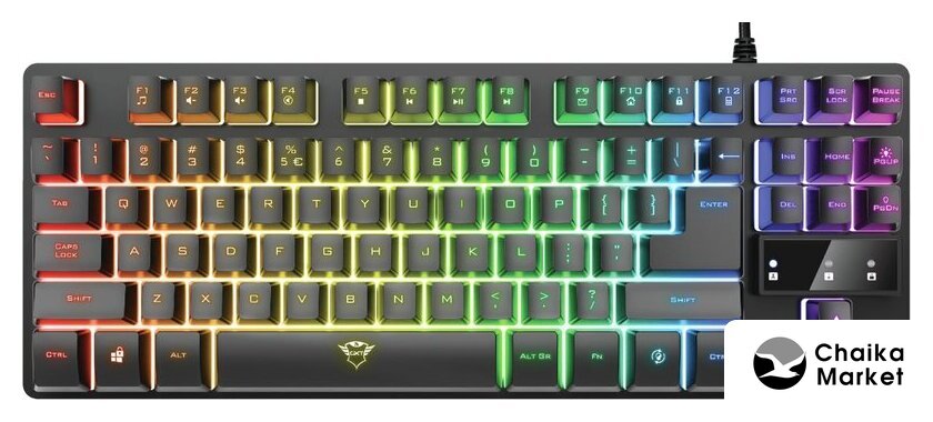 игровая для ПК, механическая, Outemu Blue, ход с кликом, пластик, интерфейс подключения - USB-A, кириллица: да, влагозащита, цвет черный
