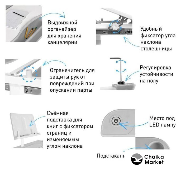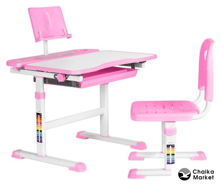 парта (1 стул в комплекте), 95×59 см, материал: ЛДСП, материал стула: металл + пластик, регулировка высоты, регулировка наклона