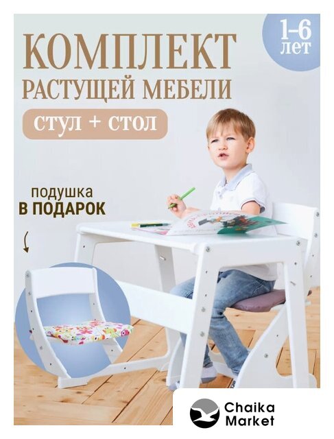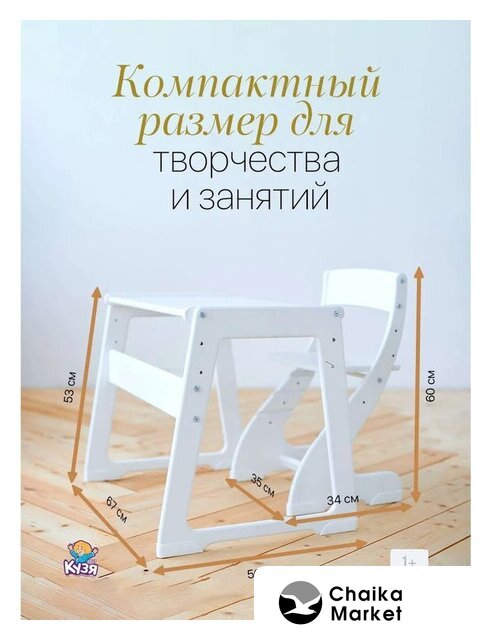 детский стол (0 стульев в комплекте), для детей 1–6 лет, 60×50 см, материал: МДФ, материал стула: МДФ