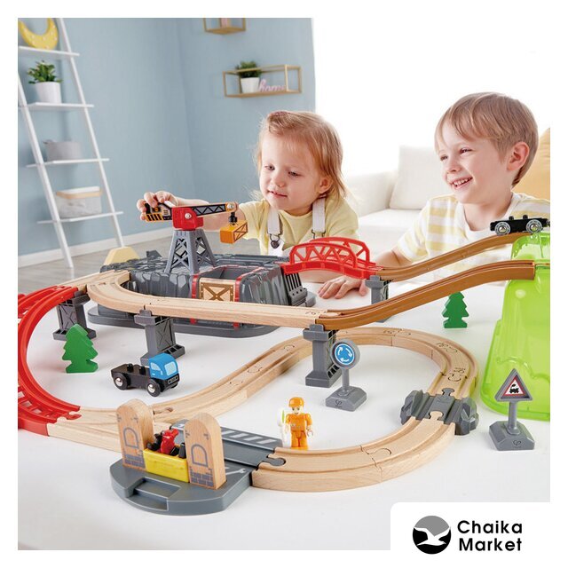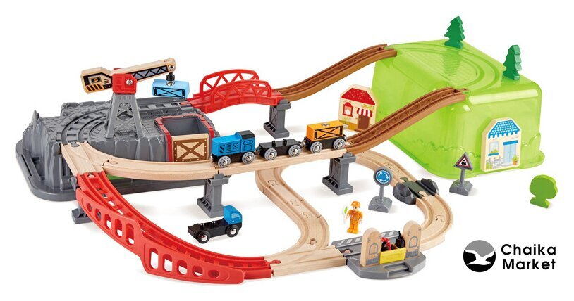 Состав набора | В комплекте есть прямые и изогнутые детали железнодорожного полотна, локомотив с дополнительными вагонами, элементы ландшафта и мосты. |
