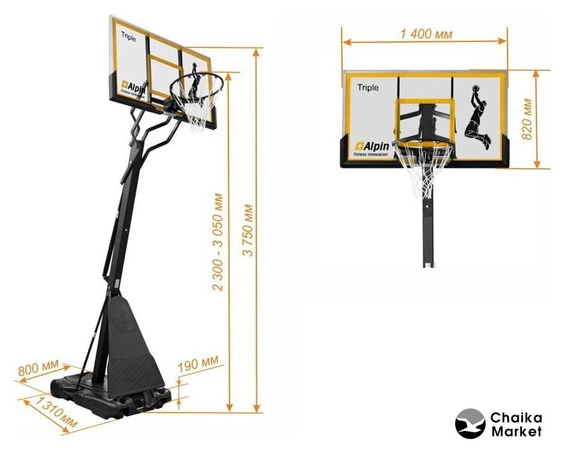 Высота | 3.75 м (230-305 см ступенчатая регулировка) |