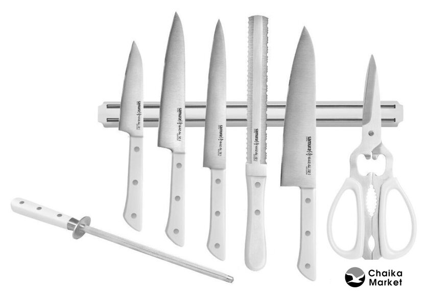 Дополнительные предметы в наборе | кухонные ножницы, точило для ножей, магнитный держатель |