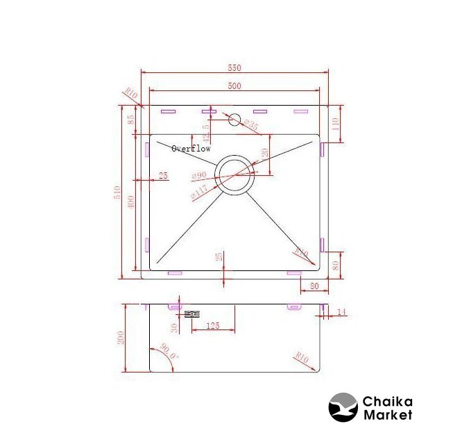 врезная на столешницу, нержавеющая сталь, размеры: 78x48 см, глубина чаши: 22 см