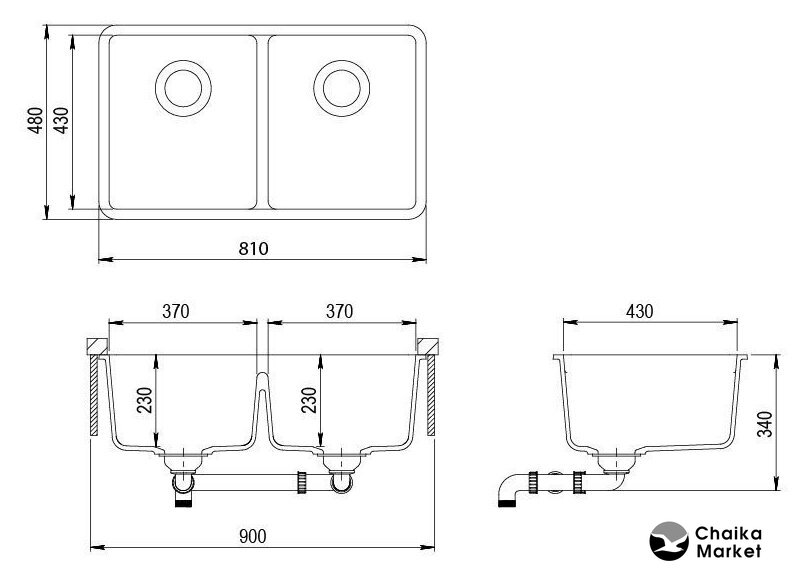 Комплектация | сифон, сливная арматура (3×1/2" с клапаном нержавеющая сталь, AQF 001), клапан (нерж.сталь. AQF 001) |