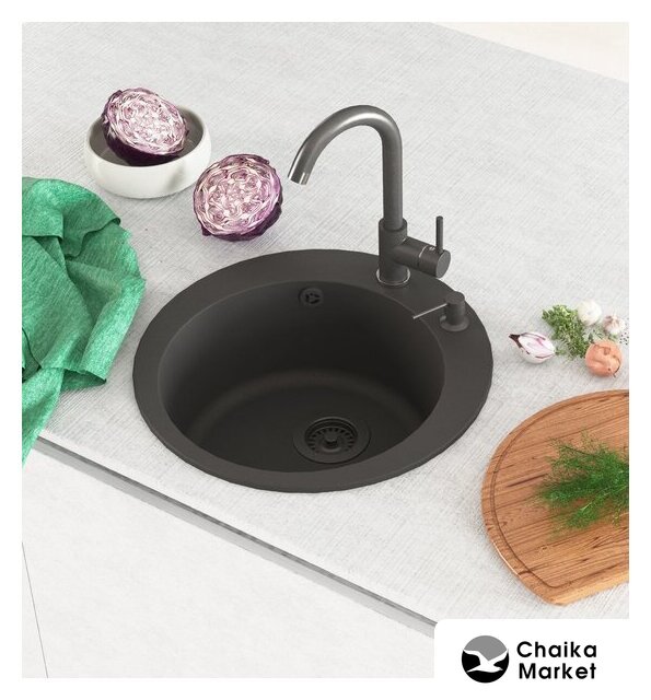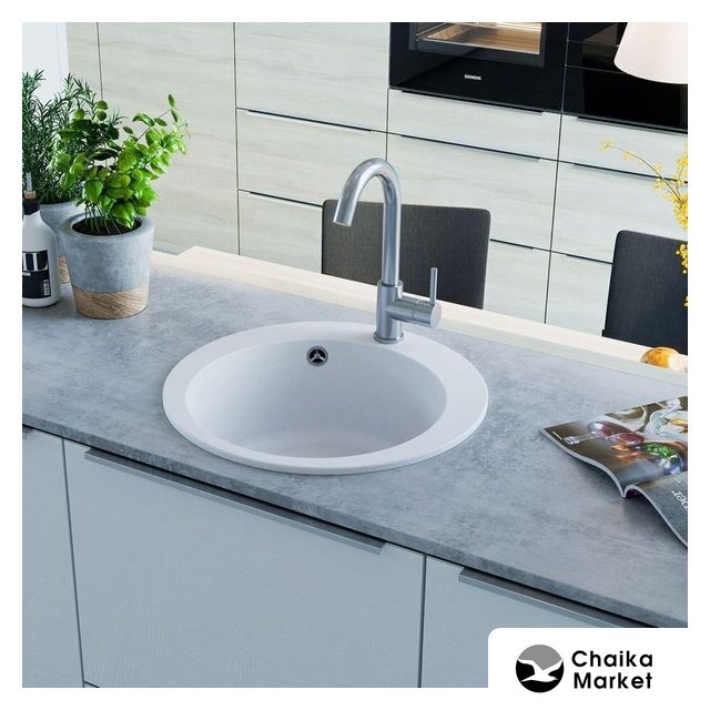 врезная на столешницу, искусственный камень, фактура: матовая, размеры: 51x46 см, глубина чаши: 20 см, в шкаф шириной от 45 см