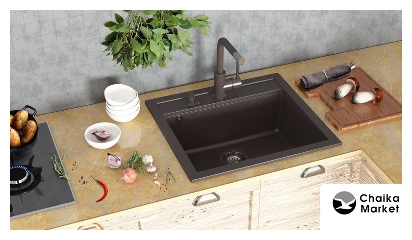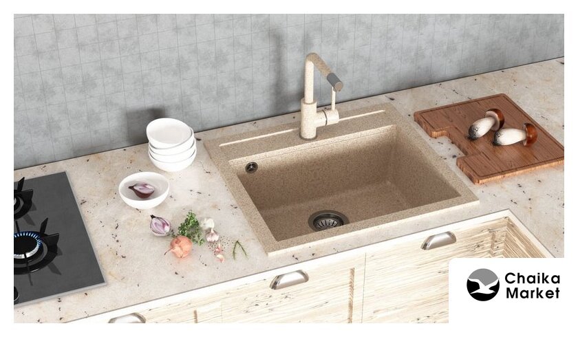 врезная на столешницу, искусственный камень, размеры: 60x50 см, глубина чаши: 20 см, в шкаф шириной от 50 см
