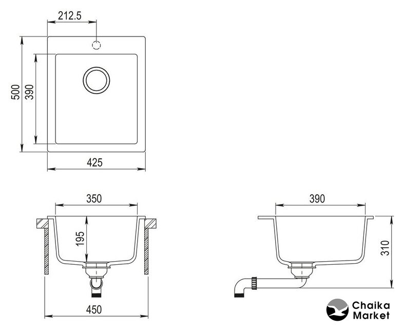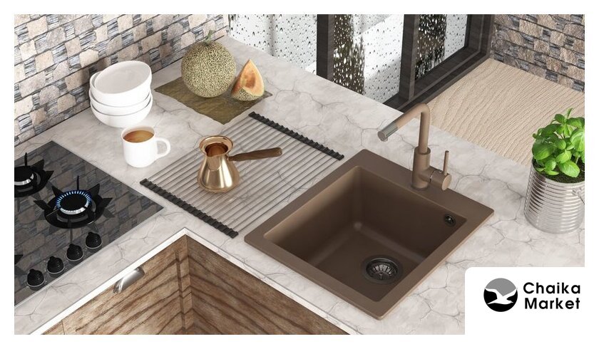 врезная на столешницу, искусственный камень, размеры: 64x50.5 см, глубина чаши: 18.5 см, в шкаф шириной от 40 см