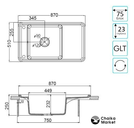 | Комплектация | Мойка - 1 штСифон - 1 штСлив-перелив - 1 штИнструкция - 1 шт |