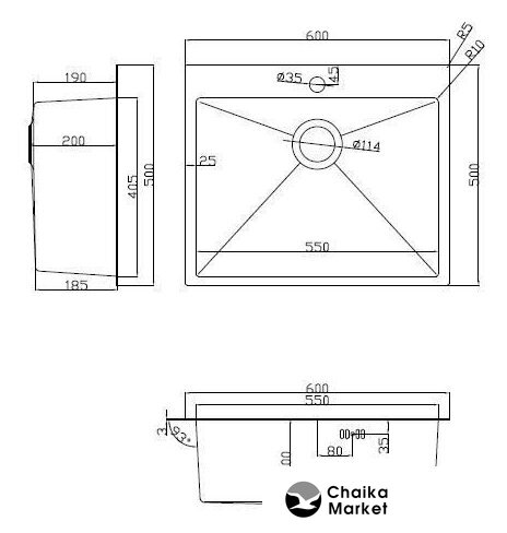 врезная на столешницу, нержавеющая сталь, размеры: 60x50 см, в шкаф 60 см