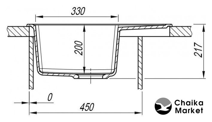 врезная на столешницу, искусственный камень, размеры: 58x47 см, в шкаф 45 см