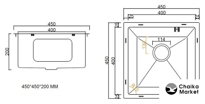 | Диаметр сливного отверстия | 4.5" |