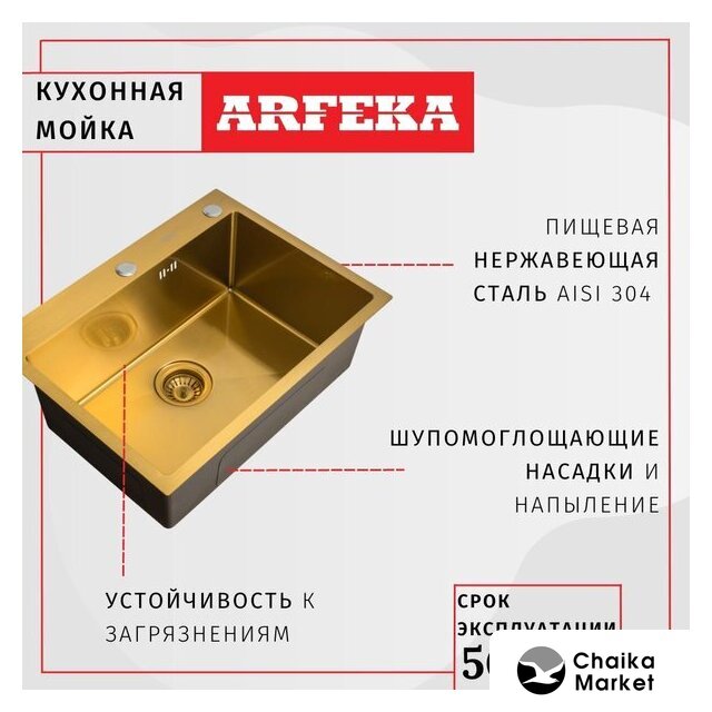 врезная на столешницу, нержавеющая сталь, фактура: матовая, размеры: 50x44 см, глубина чаши: 21 см