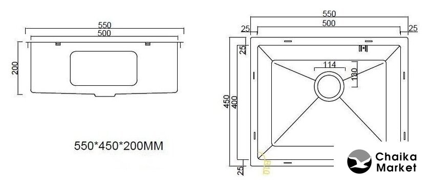 врезная под столешницу, нержавеющая сталь, размеры: 55x45 см