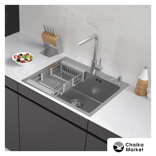 Комплектация | мойка, телескопический коландер, дозатор для жидкого мыла |