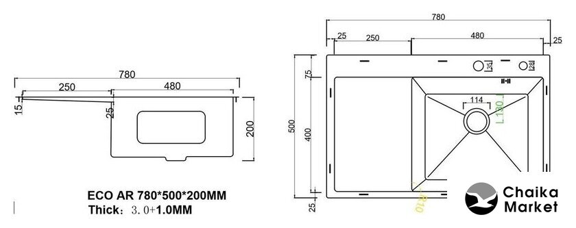 Толщина стали | 3 мм |