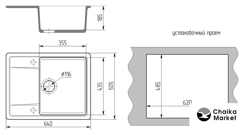 врезная на столешницу, искусственный камень, размеры: 64x50.5 см, в шкаф 40 см