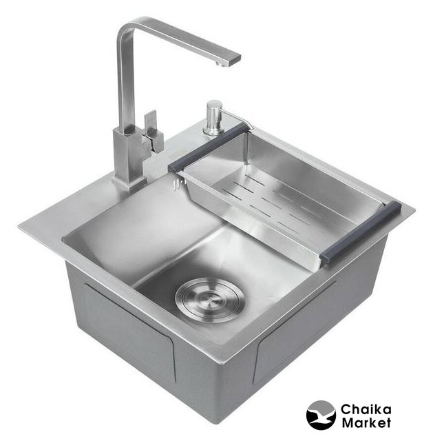 врезная на столешницу, нержавеющая сталь, фактура: матовая, размеры: 60x50 см, глубина чаши: 20 см, в шкаф шириной от 60 см