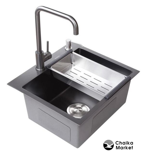 Комплектация | 1. Сифон с гофрой 2. Коландер из нержавеющей стали 3. Дозатор для моющих средств |