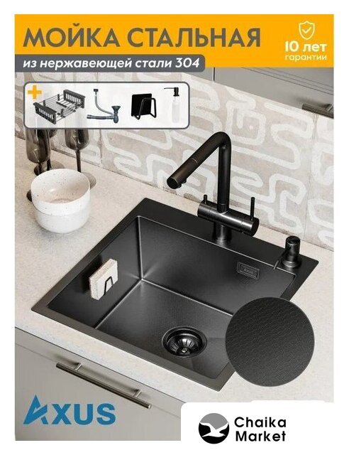 врезная на столешницу, нержавеющая сталь, фактура: с текстурой, размеры: 50x48 см, глубина чаши: 22 см