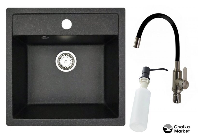| Комплектация | смеситель (1 шт.), кухонная мойка (1 шт.), дозатор для жидкого мыла (1 шт.) |