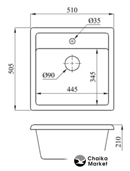 врезная на столешницу, искусственный камень, размеры: 42.5x48.5 см, глубина чаши: 18 см, в шкаф шириной от 45 см