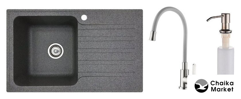 Комплектация | Мойка кухонная БелЭворс Styl L, Смеситель Ledeme L74004-9, Дозатор Ledeme L405-1 |