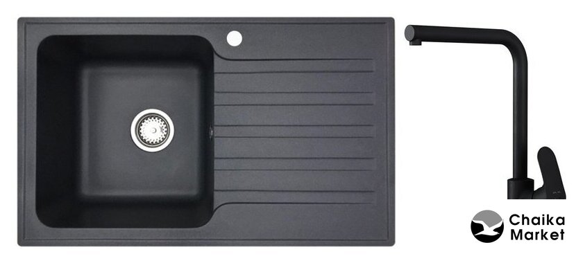 Комплектация | Мойка кухонная БелЭворс Styl L (черный), Смеситель AM.PM Like F8005022 |