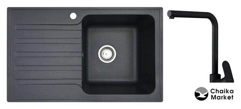 Комплектация | Мойка кухонная БелЭворс Styl R (черный), Смеситель AM.PM Like F8005022 |