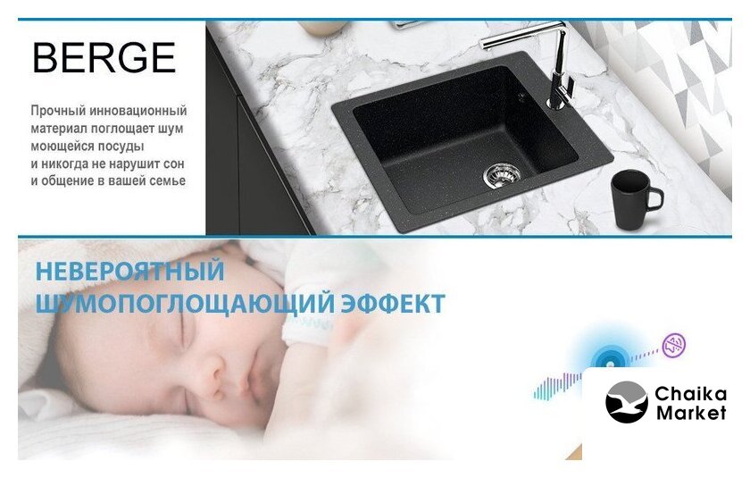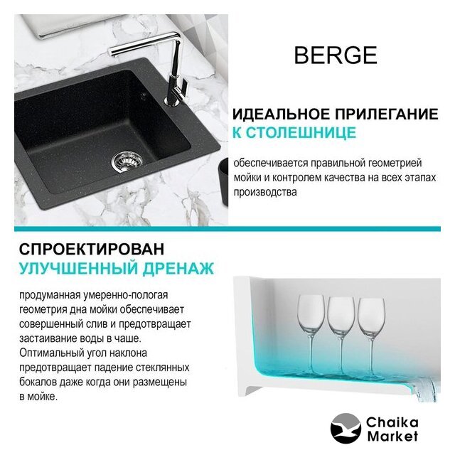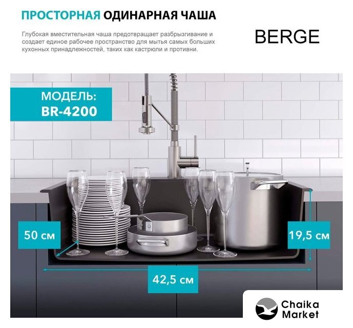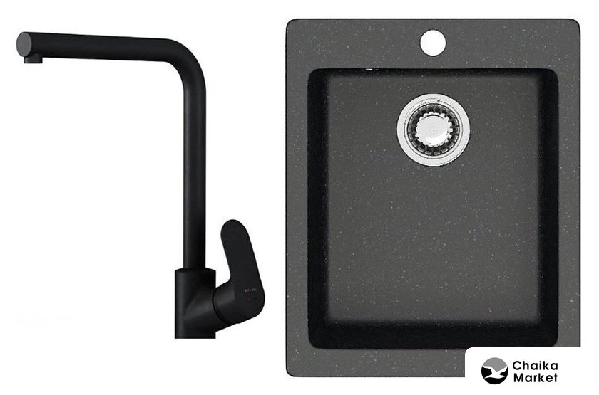 Комплектация | Мойка кухонная Berge BR-4200 (черный), Смеситель AM.PM Like F8005022 |