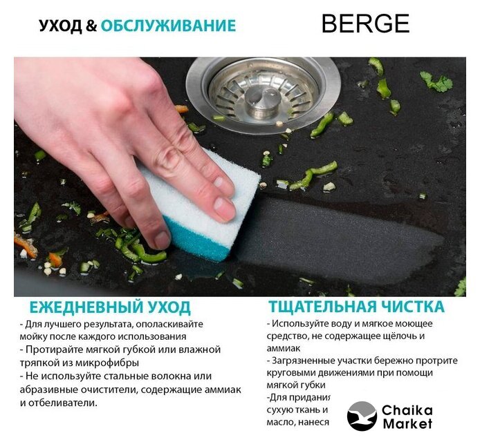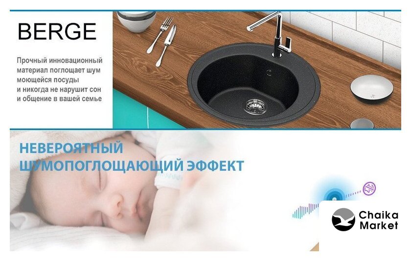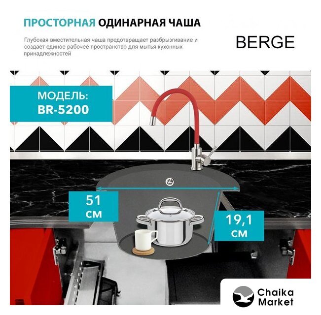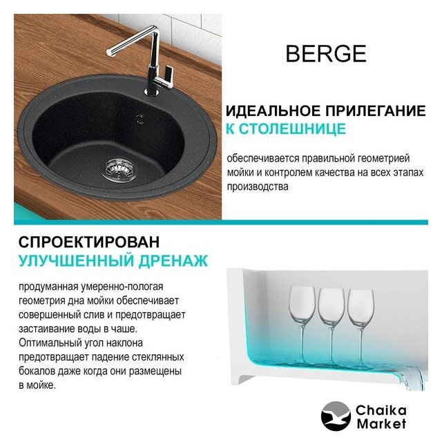 | Комплектация | Мойка кухонная Berge BR-5200 (черный), Смеситель AM.PM Like F8007122 |