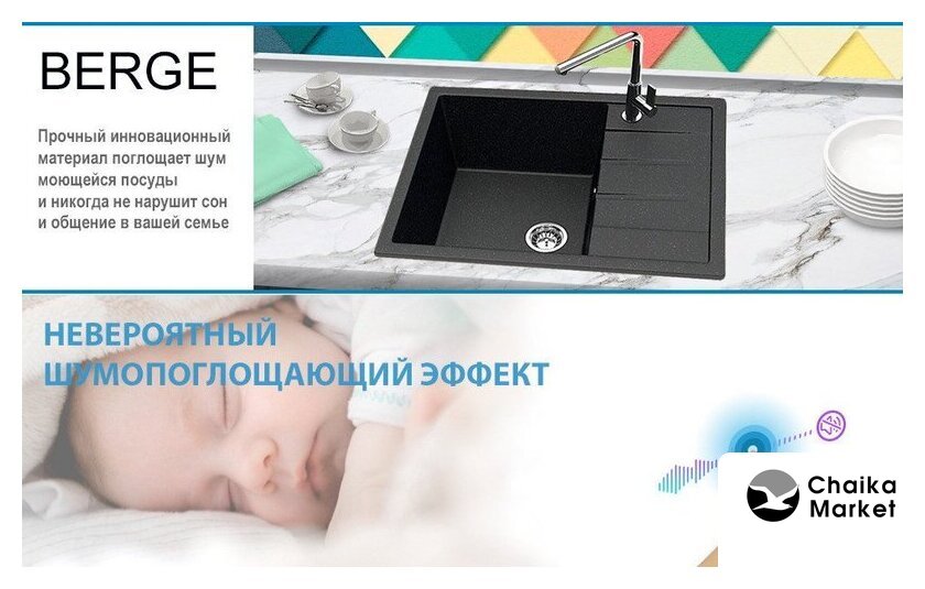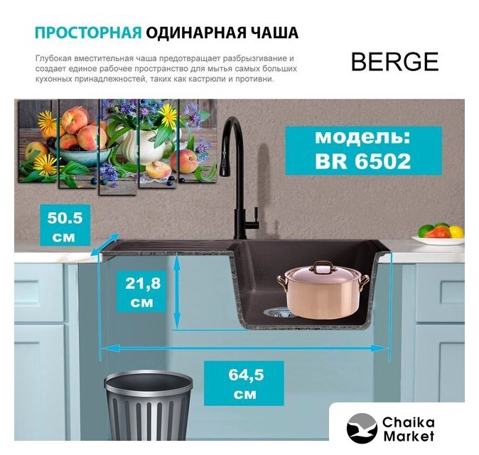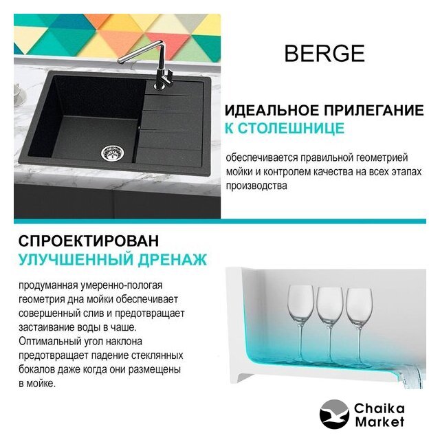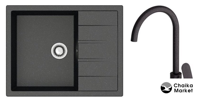 Комплектация | Мойка кухонная Berge BR-6502 черный; Смеситель AM.PM Like F8007122 |