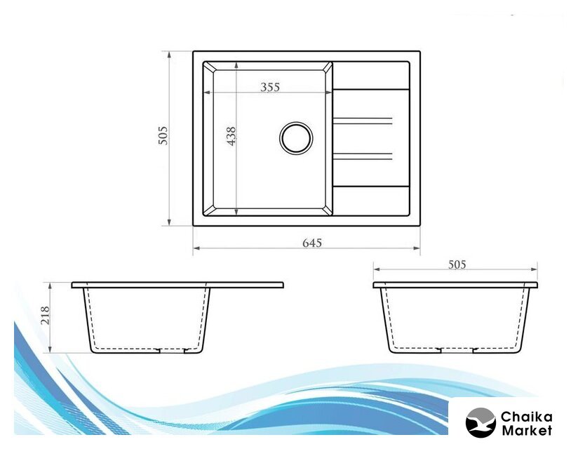 врезная на столешницу, искусственный камень, размеры: 62x43.5 см, глубина чаши: 20 см, в шкаф шириной от 45 см, клапан-автомат