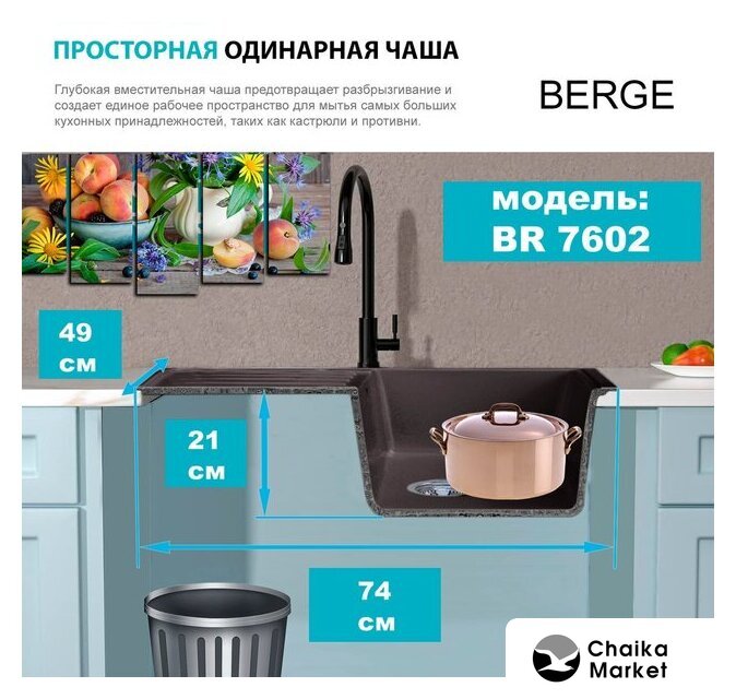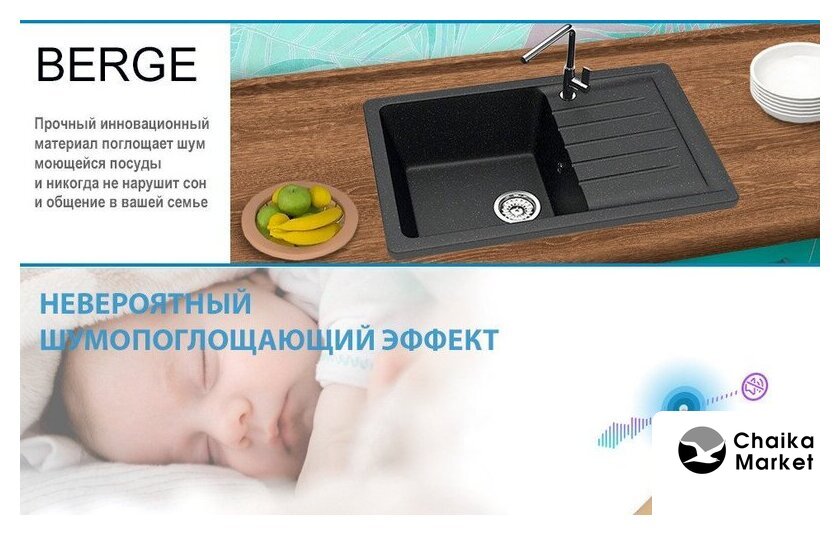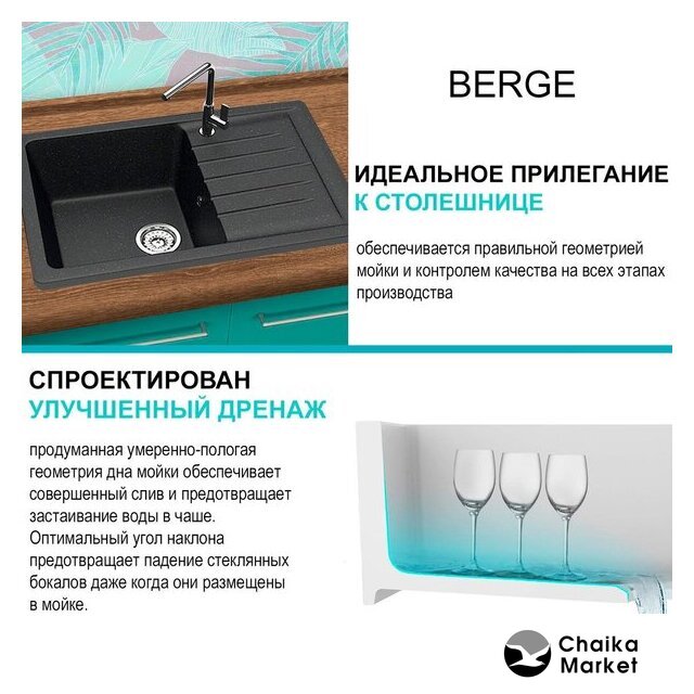 Комплектация | Мойка кухонная Berge BR-7602, Смеситель AM.PM Like F8007122 |
