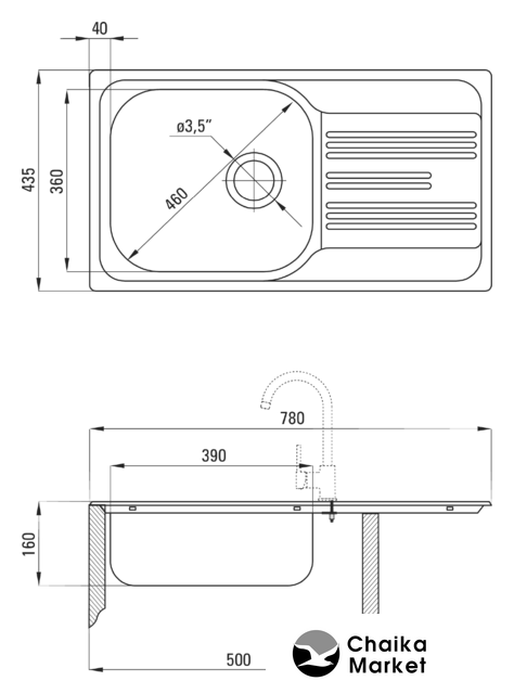 | Глубина мойки | 43.5 см |
