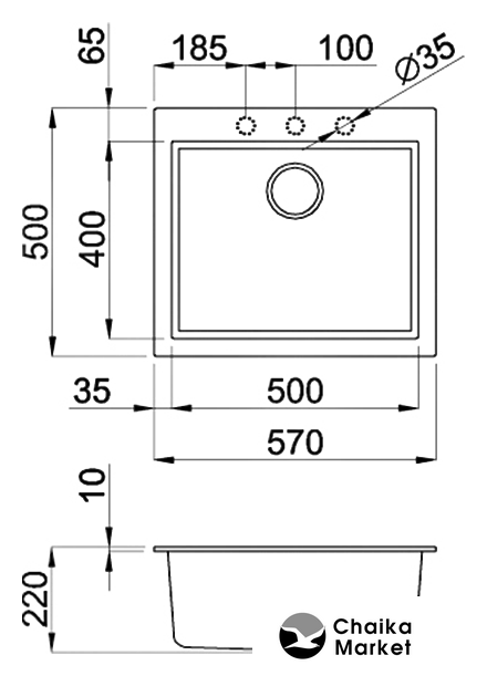 врезная на столешницу, искусственный камень, размеры: 57x50 см, в шкаф 60 см