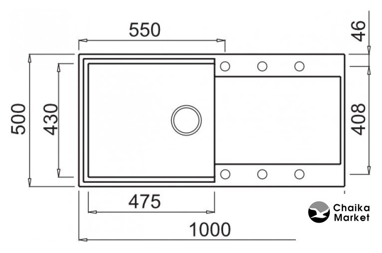 врезная на столешницу, нержавеющая сталь, размеры: 60x48 см, глубина чаши: 22 см