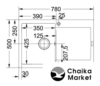 врезная на столешницу/врезная вровень со столешницей, искусственный камень, размеры: 78x50 см, глубина чаши: 22 см, в шкаф шириной от 60 см, клапан-автомат