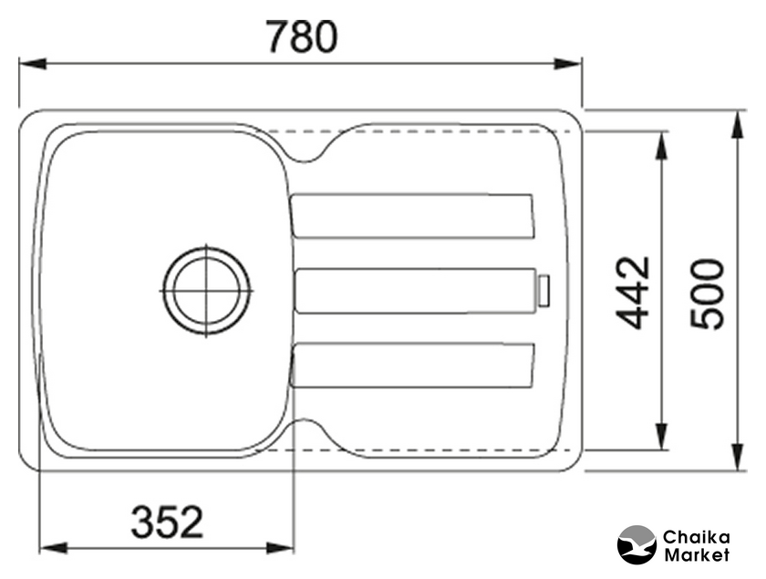 врезная на столешницу, искусственный камень, размеры: 78x50 см, в шкаф 45 см